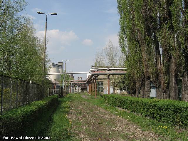 Bocznica przebiegała przez zakłady Andropol i Andoria, między którymi znajdował się przejazd na drodze krajowej nr 52. Widok z drogi krajowej na bramę Andropolu.