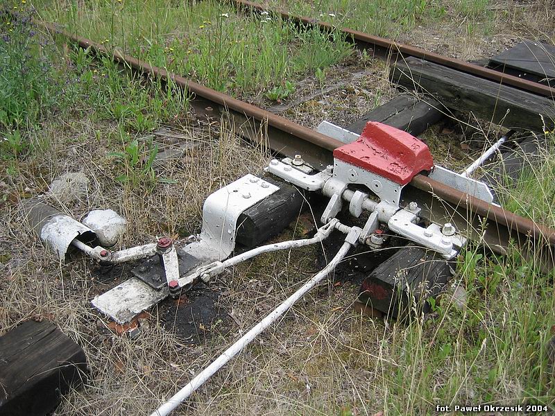 Scentralizowane nastawianie urządzeń zewnętrznychDźwignie nastawcze stosuje się do nastawiania urządzeń zewnętrznych w urządzeniach mechanicznych scentralizowanych, a także w urządzeniach kluczowych przy sygnalizacji kształtowej. Dźwignie umieszczone są w rzędzie, na ławie dźwigniowej. Wyróżnia się dźwignie zwrotnicowe, wykolejnicowe, ryglowe oraz sygnałowe. Trzony dźwigni sygnałowych semaforów i tarcz ostrzegawczych malowane są na czerwono, tarcz manewrowych i zaporowych - na niebiesko z czerwoną obwódką, a zwrotnicowych, wykolejnicowych i ryglowych na niebiesko.Dźwignia zwrotnicowa Dźwignia zwrotnicowa składa się z ulokowanego na podstawie dźwigni krążka linkowego obracanego trzonem dźwigni z rękojeścią i uchwytem zapadkowym. Przestawienie dźwigni odbywa się po naciśnięciu uchwytu, co powoduje mechaniczne połączenie trzona z krążkiem. Gdy uchwyt jest zwolniony, trzon połączony jest z krążkiem za pomocą dźwigienki sprzęgającej, która umożliwia rozsprzęgnięcie (wykleszczenie) dźwigni i obrót krążka w przypadku rozprucia zwrotnicy lub zerwania pędni.