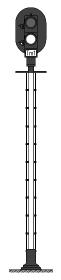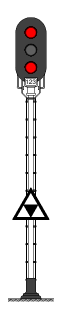 3. Sygnalizacja świetlna w latach powojennychPo II Wojnie Światowej stosowano sygnały świetlne podobne do przedwojennych[9] - semafory podawać mogły sygnały składające się z jednego lub dwóch zielonych świateł, uzupełnione opcjonalnie sygnałami dwustawnej tarczy ostrzegawczej, umieszczanej na maszcie semafora (np. w przypadku semaforów wjazdowych; tabl. 8). Oprócz tarcz ostrzegawczych dwustawnych zastosowano trzykomorowe tarcze ostrzegawcze trzystawne (tabl. 9). W dalszym ciągu przepisy przewidywały sygnał składający się z trzech uniesionych ramion (względnie trzech zielonych świateł), oznaczony wówczas jako S4, o znaczeniu "Wolna droga ze zmniejszoną szybkością w kierunku innym niż na sygnał S3". Sygnalizatory produkowano na licencji zakupionej od firmy Ericsson[5].